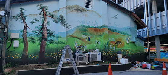 주차장 앞 벽화는 특정 디자인이 아닌 풍속화풍으로 그려야 해서 온전히 대표님이 엄청 고생하셨습니다.